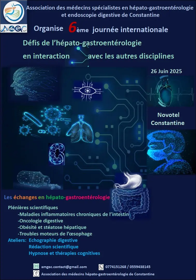 AMGEC regroupant des spécialistes en hépatologie, gastro-entérologie et endoscopie digestive de la région de Constantine, en Algérie. Elle vise à promouvoir l'excellence clinique, la formation continue et la recherche dans ces disciplines.